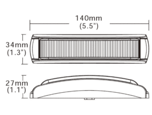 Kaareva LED-varoitusvalo. Pakkauksessa mukana kiinnitysrauta.
