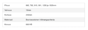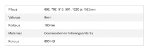 180x9x692, 180x9x792, 180x9x915, 180x9x1220, 1180x9x1525, 240x10x692, 240x10x792, 240x10x915, 240x10x1220, 240x10x1525, 240x14x915, 240x14x1220, 240x14x1525, 240x14x692, 240x14x792, 240x14x991, 200x16x692, 200x16x792, 200x16x915, 200x16x1220, 200x16x1525, 120x10x1680, 120x10x1780